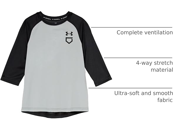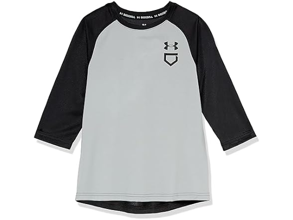 Under Armour Boys Utility 3/4 Performance Shirt, (011) Mod Gray Full Heather/Black/Black, Medium