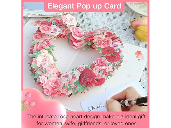 YOYOKIT Valentines Day Cards for Wife Husband Him Her, 3D Pop Up Elegant Rose Heart Design Flower Greeting Card for Valentine, Anniversary, Birthday for Couple
