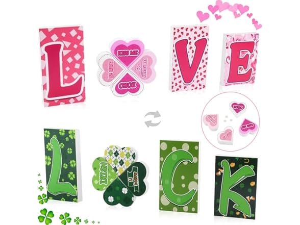 Valentines Day Decorations Tiered Tray Decor, 7 PCS St. Patrick‚ Day Reversible Love & Luck Wooden Signs with 4 Detachable Wooden Heart, for Mantel Shelf Home Farmhouse Kitchen Tiered Tray