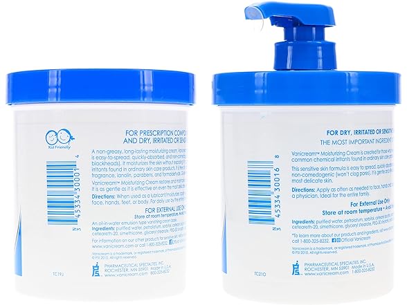 Vanicream Moisturizing Skin Cream with Pump Dispenser Plus Bonus Jar Combo Pack, 1 Pound Each