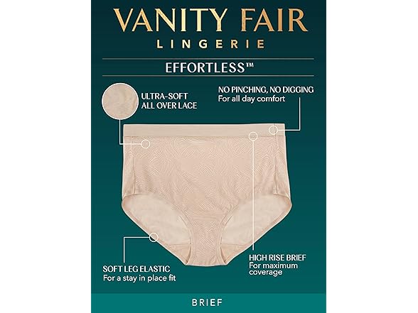 Vanity Fair Women's Effortless Panties for Everyday Wear, Buttery Soft Fabric, Brief-White Lace, 6