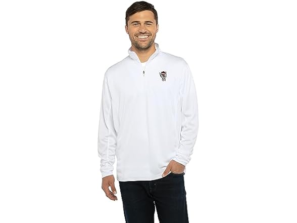 Vantage Apparel Men's Collegiate Micro Mesh Performance Team Color 1/4 Zip Pullover, North Carolina State Wolfpack, White, Large