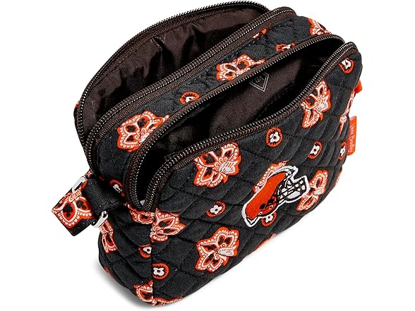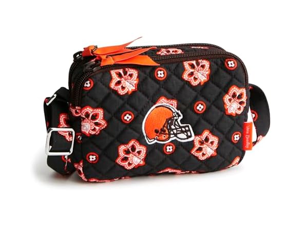 Vera Bradley Women's Cotton NFL Small Stadium Crossbody Bag (Multiple Teams Available), Clevelandbrownsonbrown/Orangebandana