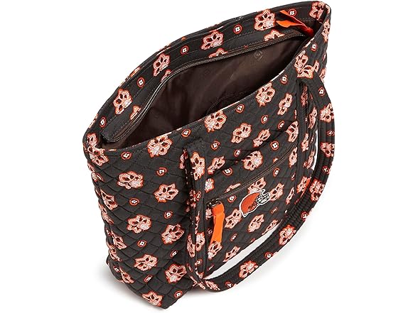 Vera Bradley Women's Cotton NFL Small Vera Tote Bag (Multiple Teams Available), Clevelandbrownsonbrown/Orangebandana
