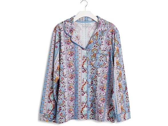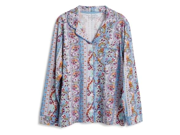 Vera Bradley Women's Long Sleeve Button-Up Shirt (Extended Size Range), Provence Paisley Stripes