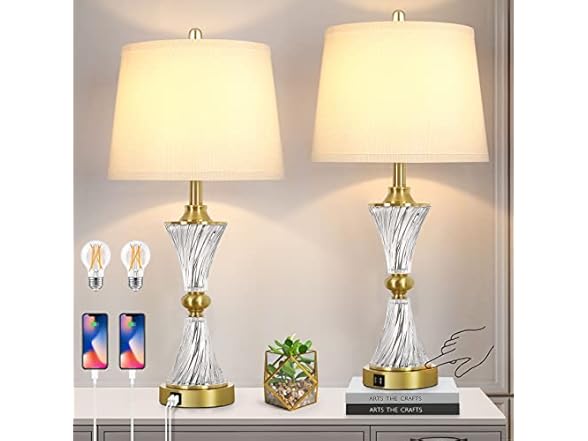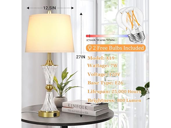- INCLUDES 2 ENERGY-EFFICIENT LED BULBS: Worried about purchasing mismatched bulbs? 2*A19 LED bulbs included! There is no need to buy additional bulbs, greatly save your time and money. 2700K warm white, 25,000 hours, effectively reducing energy consumption and promoting environmental friendliness. You can install and use directly as soon as receiving the set of 2 bedside lamps