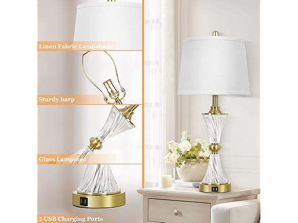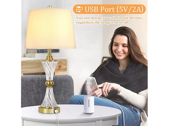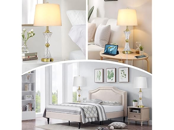 - 2 USB CHARGING PORTS & CONVENIENT CHARGING: Each table lamp for bedroom comes with 2 USB ports, unlike traditional charging ports, our table lamp supports 5V/2A fast charging for multiple smart devices at the same time, making it easy to charge your cell phone, laptop, kindle, or other electronic devices while lying on the bed or couch. What's even more amazing is that the USB port works normally whether this modern bedroom lamp is on or off