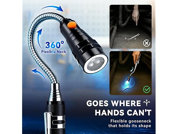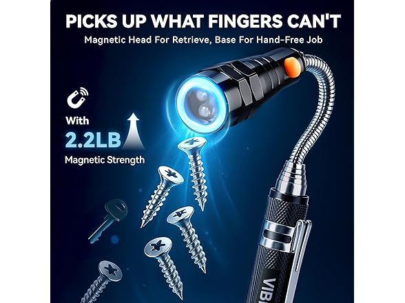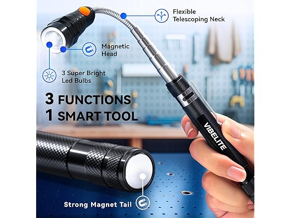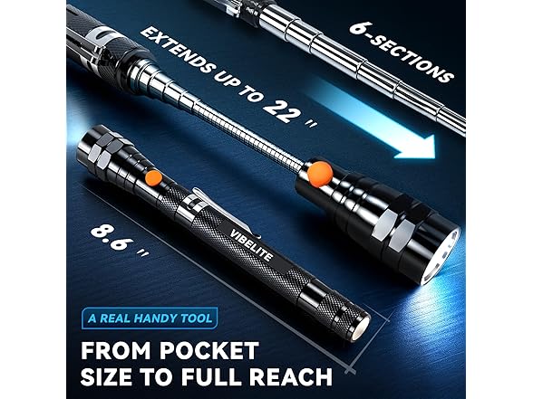 VIBELITE Extendable Magnetic Flashlight with Telescoping Magnet Pickup Tool-Cool Gadget Christmas Gifts Stocking Stuffers for Men, Teen Boys, Husband, Dad, Father, Mechanic, Him, Women, Black