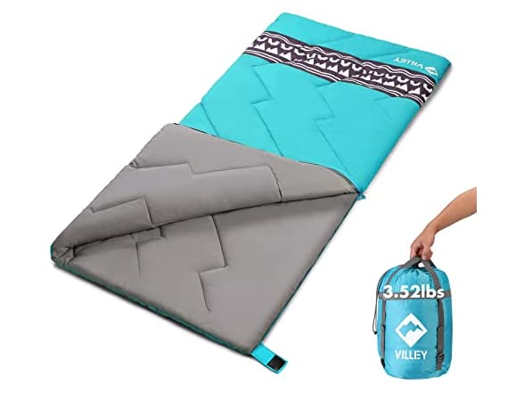 - 【USE FOR 3 SEASONS】This VILLEY sleeping bag design with the full-length draft tube, prevents air leakage, adding more warmth in windy weather. Perfect for spring, summer, and autumn. Temperature Rating: 32℉-50℉. Ideal for backpacking, camping, and hiking even used at the office or home.