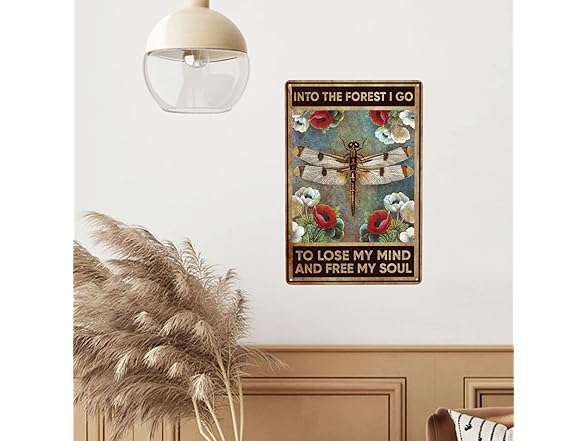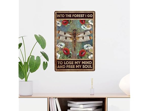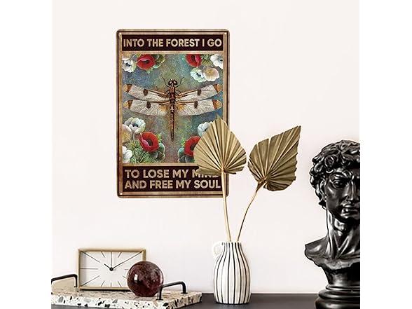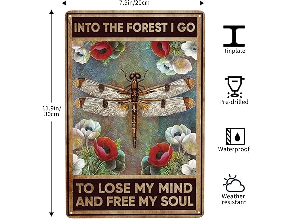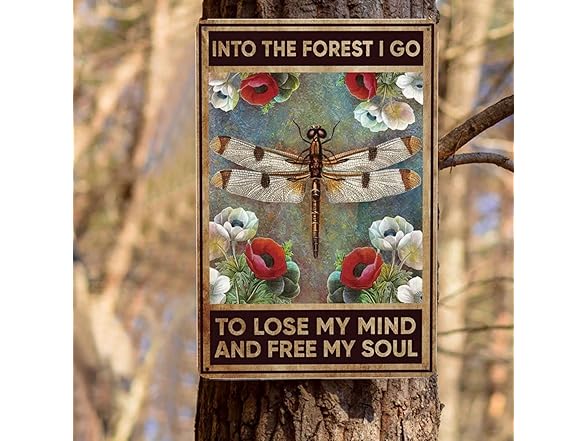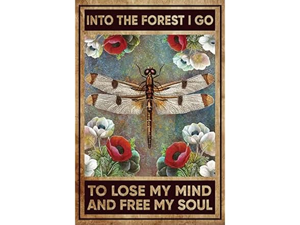 NENAWOS Vintage into The Forest I Go to Lose My Mind Dragonfly Metal Tin Sign Wall Decor Retro Dragonfly Art Signs for Home Decor Gifts 8x12 inches
