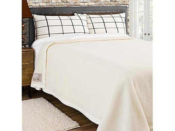 Poyet Motte Rivoli Solid 400GSM 100% Wool Blanket, Machine Washable (Natural Solid, Full/Queen Size)