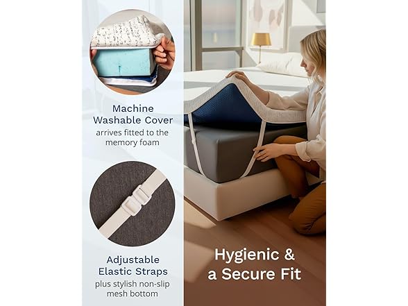 - Clean, Secure Fit - The rayon cover features a stylish, slip-resistant bottom and adjustable elastic straps, providing a secure fit. These thoughtful features eliminate the need for constant adjustments that interrupt sleep and make your bed look messy. Plus, the cover is removable and machine-washable, allowing you to maintain a consistently clean sleep environment while adding a protective layer against dirt and dust. Best of all, the cover arrives already fitted to the foam.