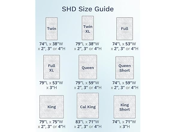 - Diverse Size Selection - As a leader in mattress toppers, Viscosoft offers products in a variety of sizes to enhance comfort in as many beds as possible. Along with options that perfectly fit all standard bed sizes, the Twin XL is ideal for college dorms and split king beds, the Queen Short is designed for RVs and campers, and the Full XL accommodates evolving campus needs and futons. This selection underscores our commitment to delivering a better way to great sleep to as many as possible.