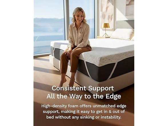 - Integrity to the Edge - The high-density foam offers unmatched edge support, making it easy to get in and out of bed without any sinking or instability. Unlike other toppers, our foam prevents that dreaded "dumped" feeling when sitting on the edge, ensuring consistent support across the entire mattress.
