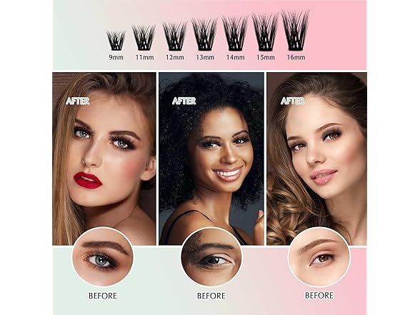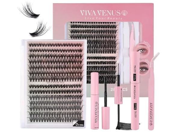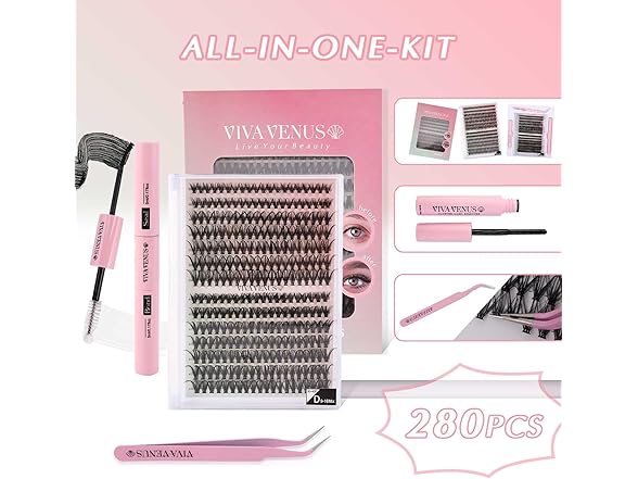 DIY Lash Extension Kit 280Pcs VIVAVENUS Individual Eyelash Clusters 5060 D Curl 9-16mm, Thick long lash Clusters With Lash Bond and Seal, Clusters Remover,Lash Tweezer, For DIY at Home
