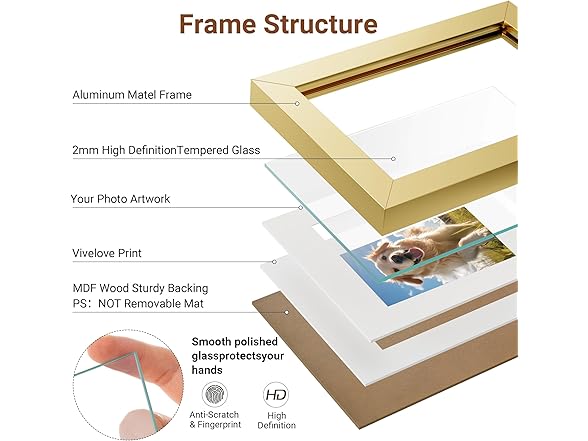 Vivelove 20x27 Picture Frame Gold for Wall Hanging or Tabletop - 20x27 Aluminum Photo Frame - Wall Mounting Horizontally or Vertically - Tempered Glass - Set of 1
