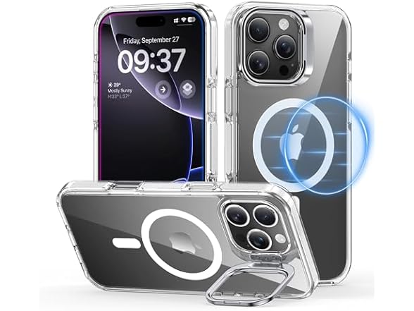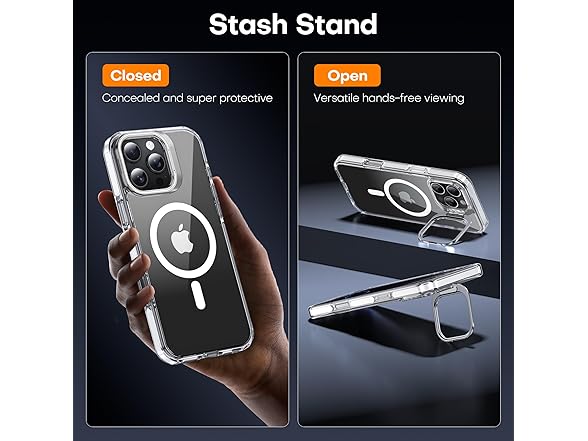 Voetrfod for iPhone 16 Pro Max Case, Camera Control Button Compatible with Magnetic,Built-in Stash Stand Phone Case, Scratch-Resistant Back Cover, Clear