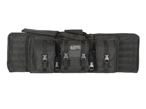 Whether you are carrying your carbines to the range or need to pack them in the field, this Voodoo Tactical brand padded weapons case is a terrific way to carry your guns and a great deal of related gear. This gun case features three carrying methods: A standard handle in center of the bag, a shoulder strap, and back-pack style shoulder harness. This backpack style carry is great for long distances. And if you use the PAL webbing to attach MOLLE or ALICE pouches, you can haul even more gear.
