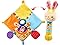 - This soft plush bunny features a brightly colored, removable lovey blanket with tags and textured fabric; easily removed for washing