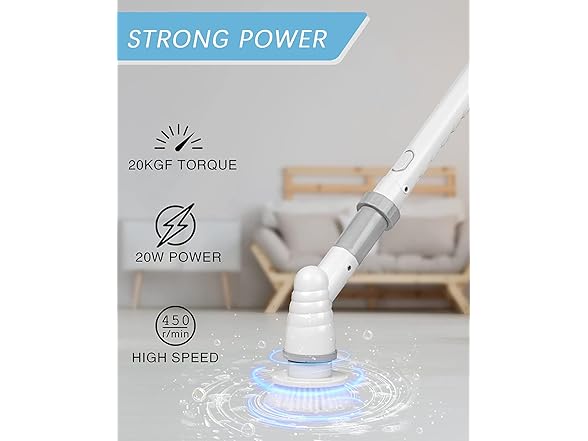 - 【IPX5 Waterproof & Cordless Design】The electric cleaning brush adopts a strict protection design, and the waterproof rating reaches IPX5. It can be used in wet environments, or the brush head can be dipped in water for cleaning. The cordless design frees you from rope constraints, further increasing cleaning speed for efficient deep cleaning. Note: Do not immerse the entire handle in water.