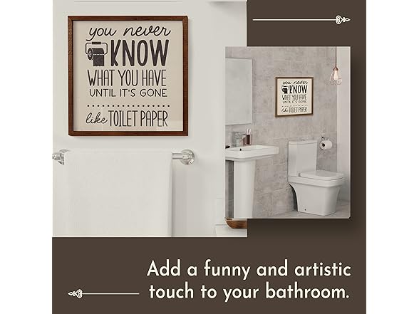 - BATHROOM SIGNS WALL DECOR – Transform your space with our "You Never Know What You Have Until It’s Gone…. Toilet Paper For Instance" funny bathroom signs. Adds an artistic touch.
