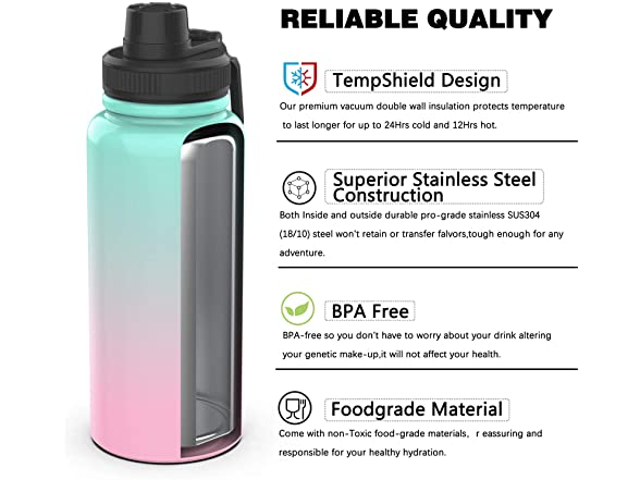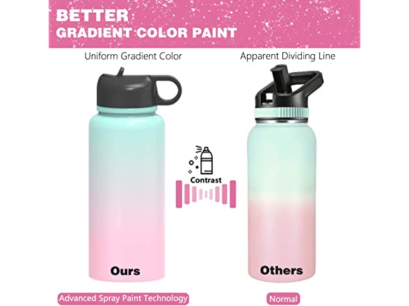 - ♻️【More Shatterproof and Rustproof】Our vacuum insulated water bottle is more shatterproof and rustproof for your long term and outdoor use. Also fully resistant to oxidation and corrosion. Tight lock, KEEP HOT FOR UP TO 12HRS, KEEP COLD FOR UP TO 24HRS. PLEASE NOTE the straw lid is only leakproof when the bottle is not shaken due to the design connecting to straw use.