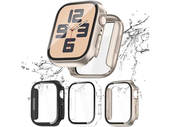 [2024 Honeycomb Design] Kedoushi 3 Pack Waterproof Case for Apple Watch Series 6 5 4 SE 40mm with Tempered Glass Screen Protector, Protective Face Cover for iWatch 40 mm Black/Starlight/Clear