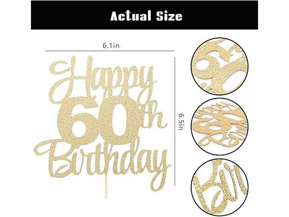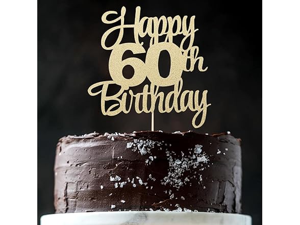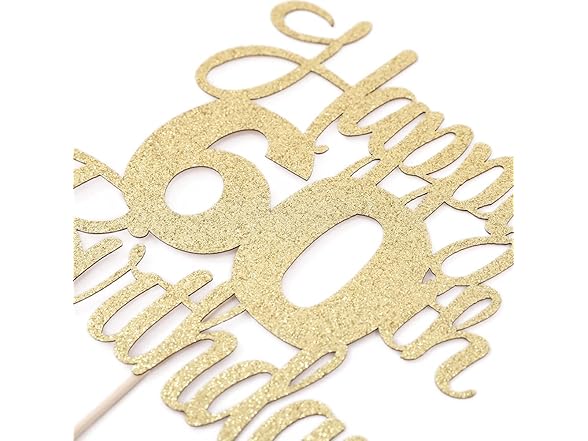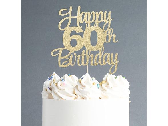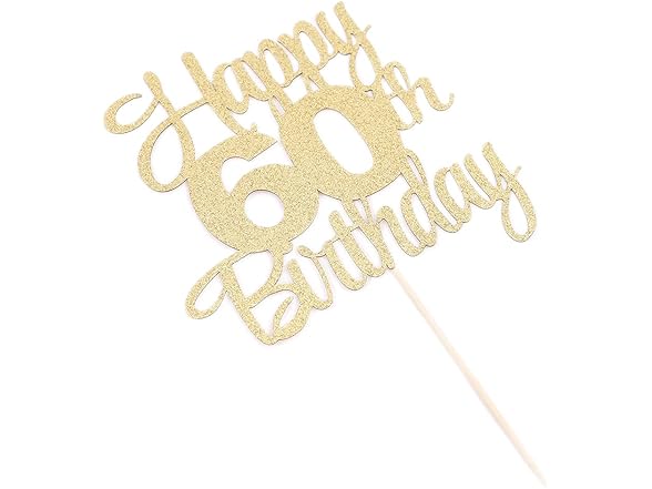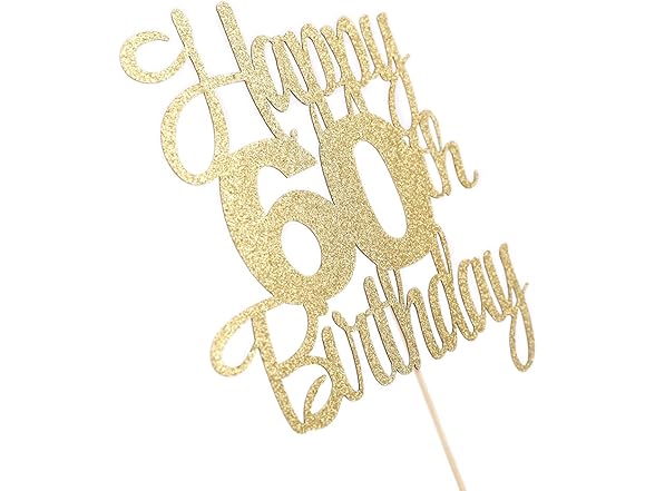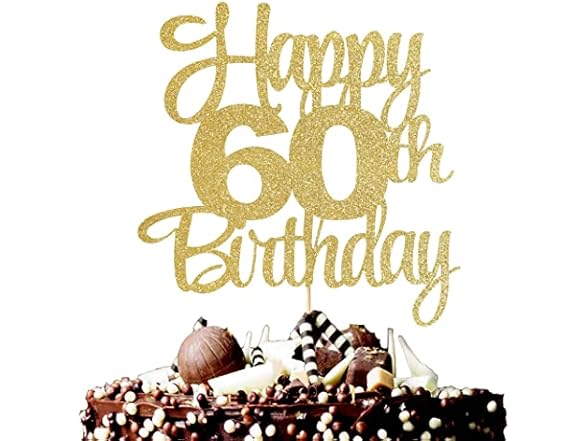 WAUAO Golden 60th Birthday Cake Topper - 60th Birthday Decorations, 60th Cake Topper for Women/Men, 1 Count