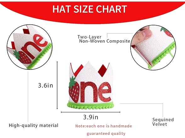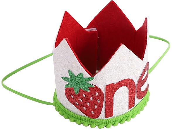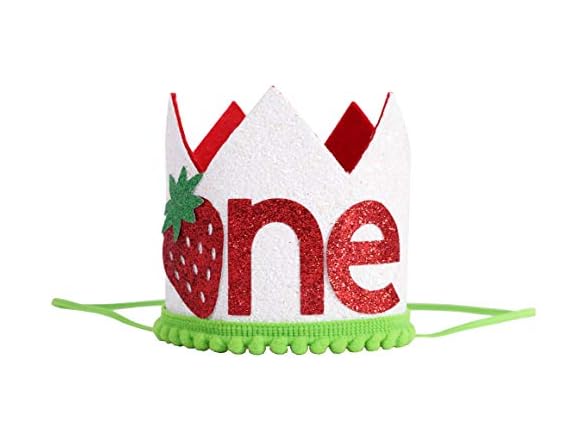 Strawberry Birthday Crown for 1st Celebrations - Photo Booth Props, Cake Smash Backdrop, and Party Supplies (One Birthday Crown)
