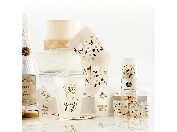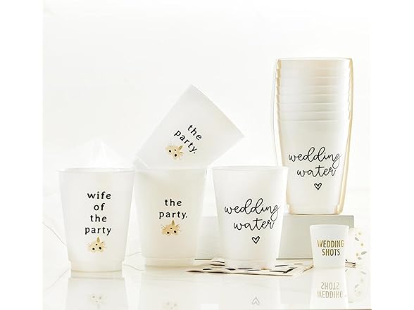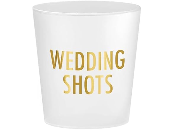 - WEDDING SHOTS Durable shot cup with gold foil block lettering