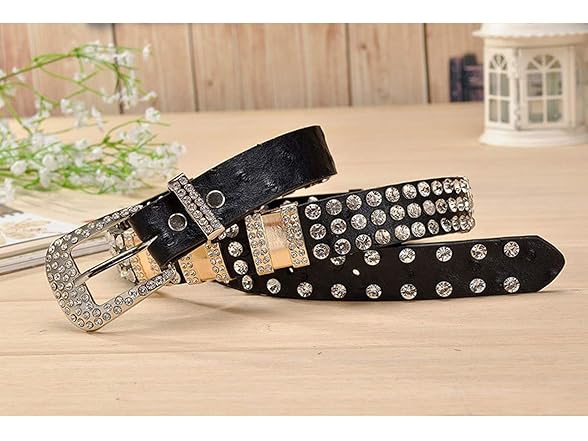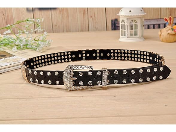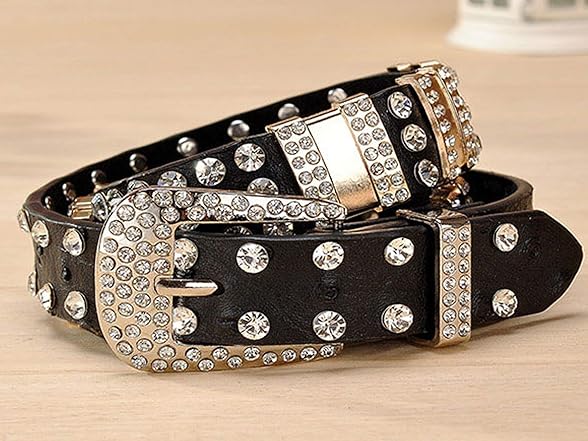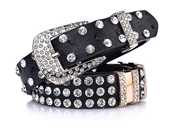 Women's Western Cowgirl Rhinestone Studded Bling Belt, Luxury Designer Jeans Women Belt Length 41 inch Black