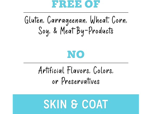 - All natural. Free of gluten, carrageenan, wheat, corn, soy and meat by-products