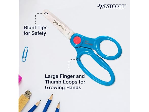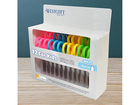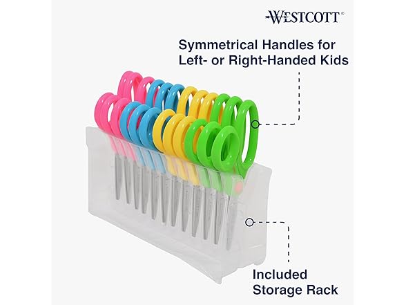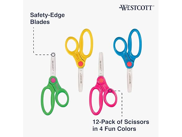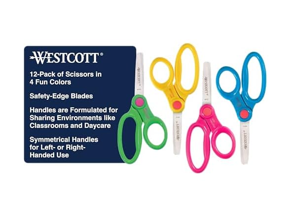 Westcott 14871 Right- and Left-Handed Scissors, Kids' Scissors, Back to School, Classroom Supplies, Ages 4-8, 5-Inch Blunt Tip, Assorted, 12 Pack