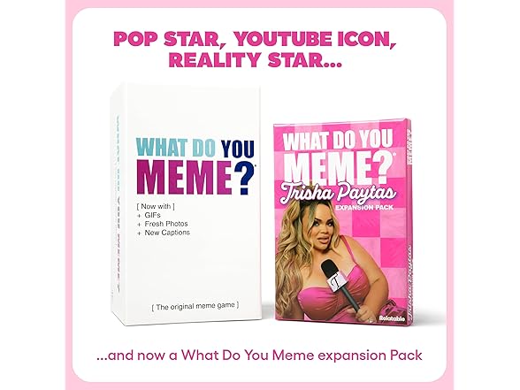 - Made for Fans: Pop star, YouTube icon, and reality star Trisha Paytas now has her own What Do You Meme Expansion Pack. Enjoy Trisha's most viral moments, captured in our hilarious, meme-able game cards, a must-have party games.