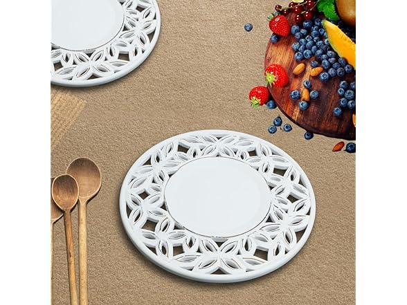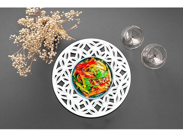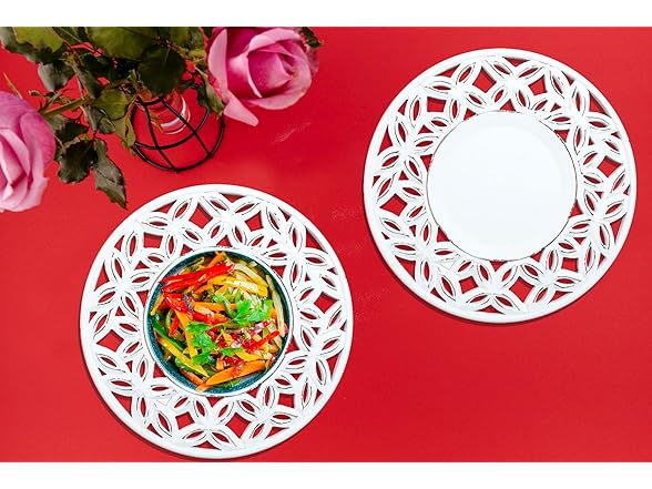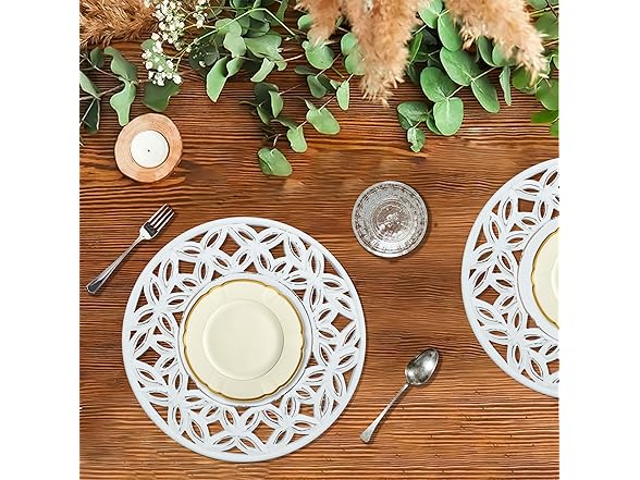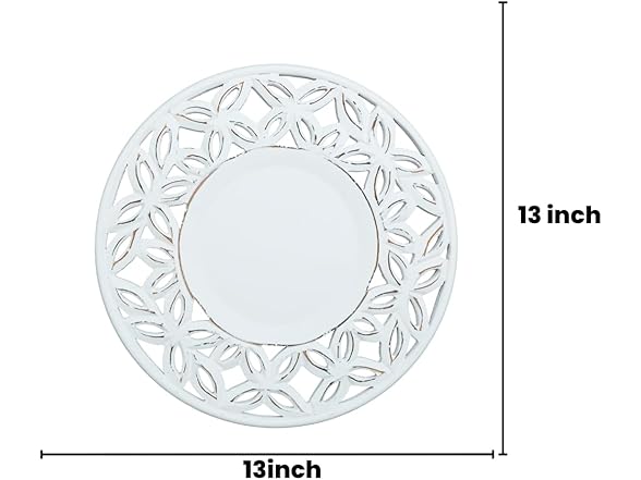 White Wood Charger for Dinner Plates Set of 2 - Decorative Cut Design 13 Inch Round Wooden Placemat for Dining Table Decor, Family Gathering, Christmas, New Year Party, Wedding, Events & Everyday Use