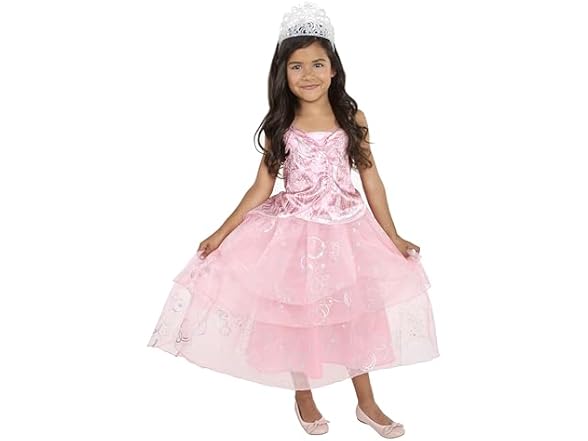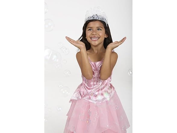 Wicked Glinda Dress for Girls Premium Official Wicked Costume Pink Bubble Dress & Shiny Tiara, with Holographic Sequin Details that Provide Shimmer and Shine! [Amazon Exclusive]