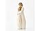 - 8”h hand-painted resin standing figure of a older woman embracing younger girl, both in cream dresses carved with intertwined vines and leaves.