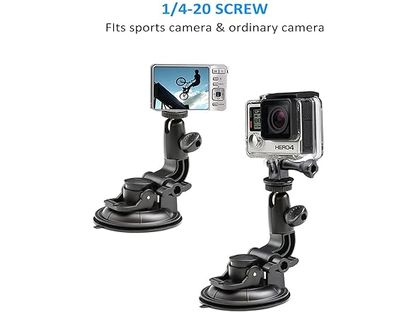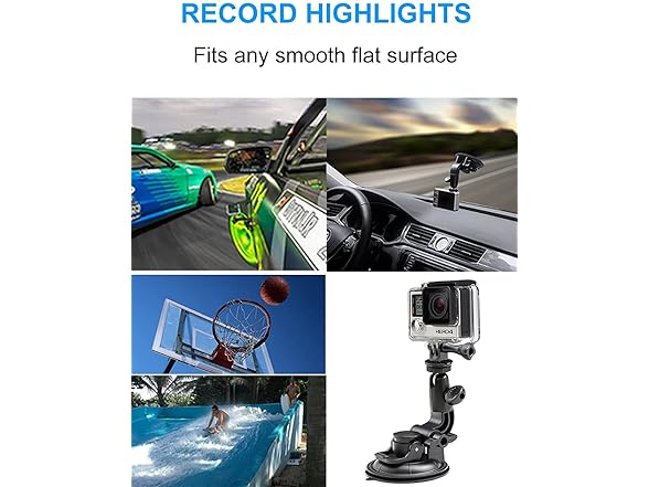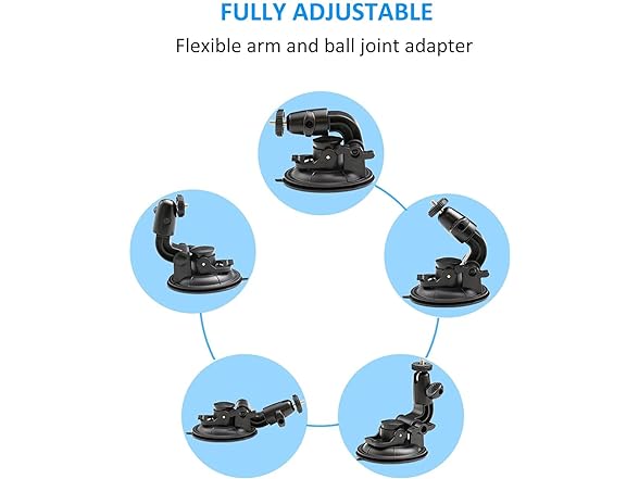 - 【WIDE MOTION】--- The main adjustable arm moves at an unimpeded 360 degree and it comes with an adaptor that can move the camera in variety of angles, more flexible than other gopro suction cup mounts. the adjustable joints and arms of our suction cup mount enables you to lock your go pro camera at the best visual angle and capture your best shots.