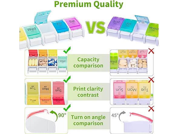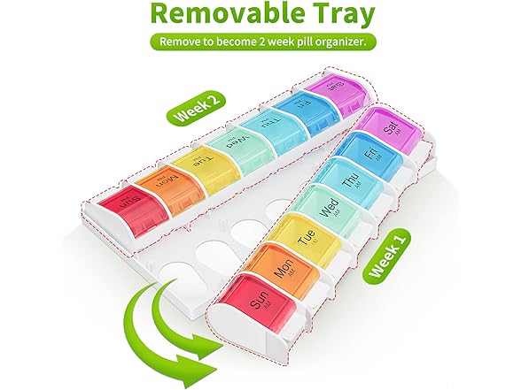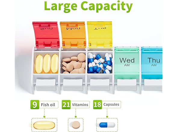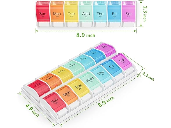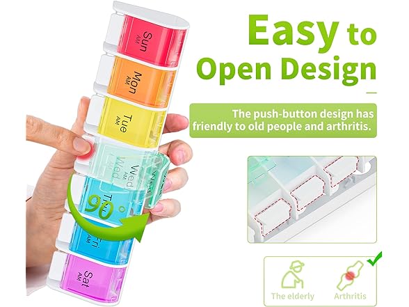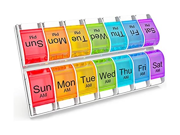 7 Days AM PM Pill Organizer - 2 Times a Day Large Weekly Pills Case, BPA-Free Pills Box Container Cases, Morning and Night Pill Boxes with Unique Push-Button Pop Open Design Hold Vitamin, Medicine