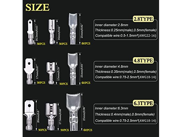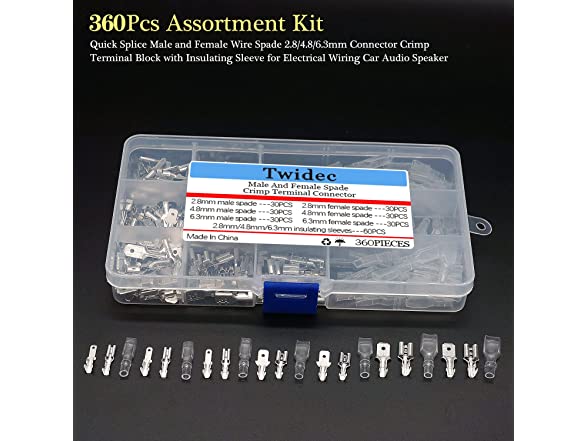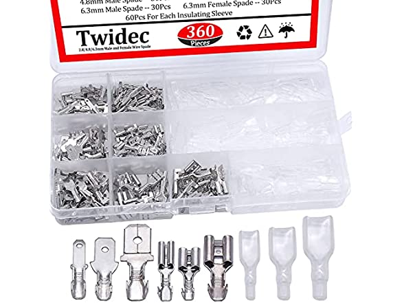 Twidec/360Pcs 2.8/4.8/6.3mm Quick Splice Male and Female Wire Spade Connector Crimp Terminal Block Assortment Kit with Insulating Sleeve for Electrical Wiring Car Audio Speaker