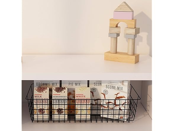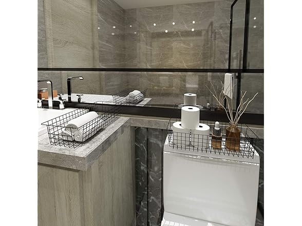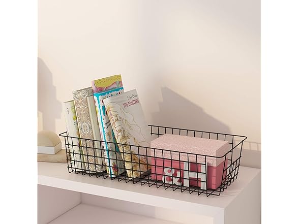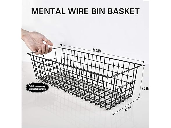 Wire Storage Baskets, 2 Pack Farmhouse Metal Wire Rustic Toilet Paper Basket, Food Organizer Bins with Handles for Kitchen Cabinets, Pantry, Closets, Bedrooms, Bathrooms, Office, Garage (Black)