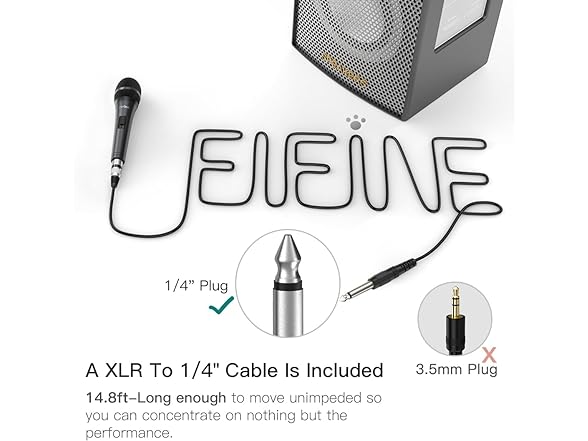 - 🎤A XLR TO 1/4” CABLE INCLUDED-Allowing the wired microphone for karaoke to be directly plug in amplifier speaker or karaoke machine that has 1/4inch (6.35mm) mic in jack. The dynamic vocal microphone protected by two-tire PVC, and it’s thick enough for brilliant, transparent sound transmission with no loss. The corded microphone with 14.8ft-long enough cable can be moved unimpeded so you can concentrate on nothing but the performance. (Tips: Only compatible for 6.35mm or 1/4” port)