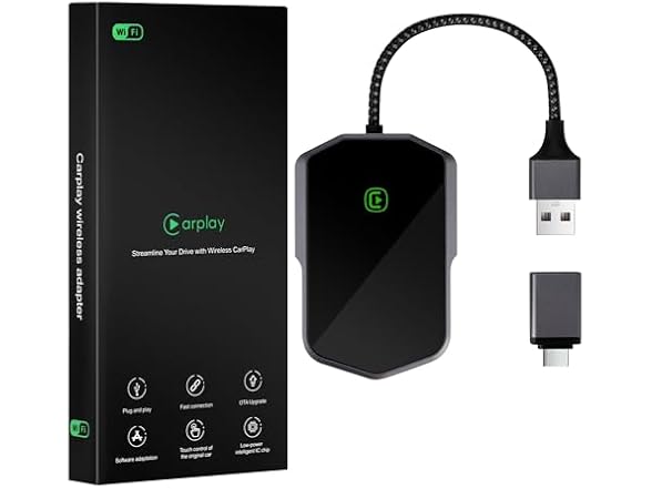Wireless CarPlay Adapter for iPhone 15/14/13/12 - Apple CarPlay Wireless Dongle Plug & Play - for Seamless Bluetooth Connectivity All Cars 2015+