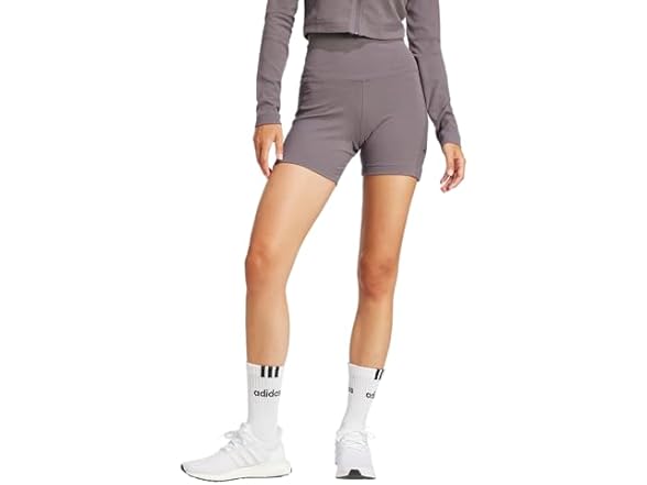 adidas Women's All SZN Ribbed High-Waisted Bike Shorts, Grey Strata/Grey Strata, X-Large