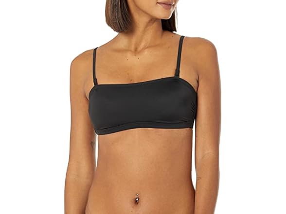 Amazon Essentials Women's Bandeau Swim Top, Washed Black, Medium