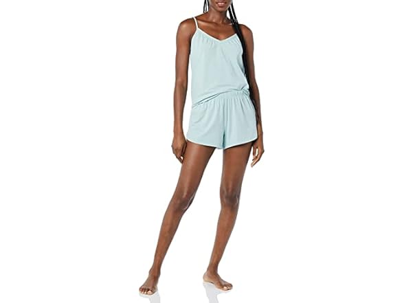 Amazon Essentials Women's Knit Jersey Cami Short Pajama Set, Dusty Blue, Medium