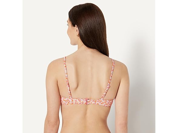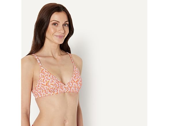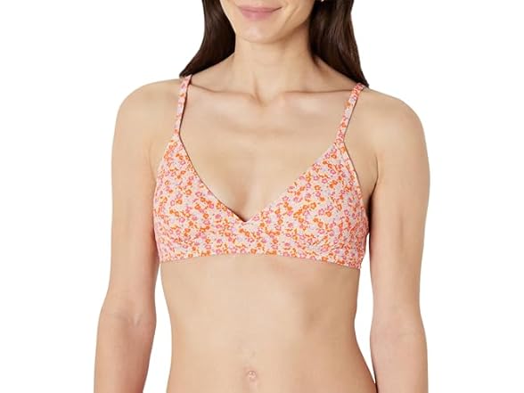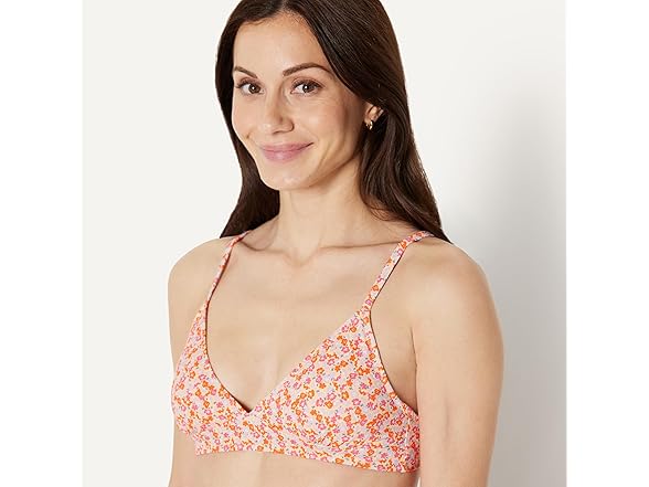 Amazon Essentials Womens LightSupport Classic Bikini Swimsuit Top Pale Peach Micro Floral (S)