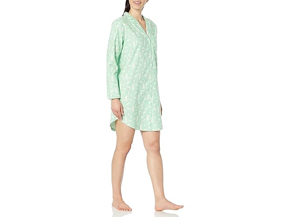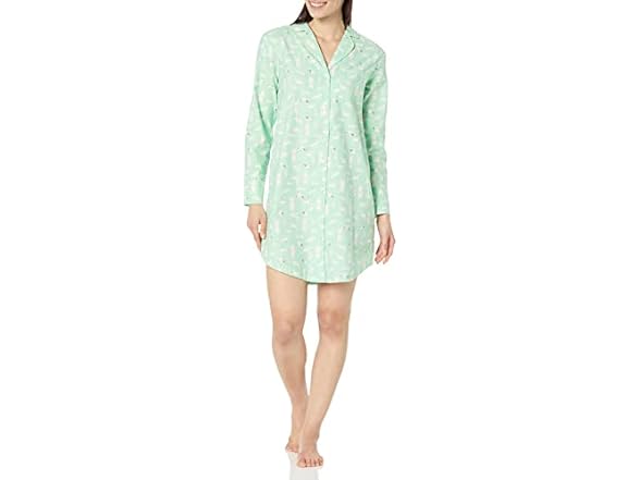 Amazon Essentials Womens Woven Flannel Notch Collar Nightgown Mint Green Forest Animals (XS)
