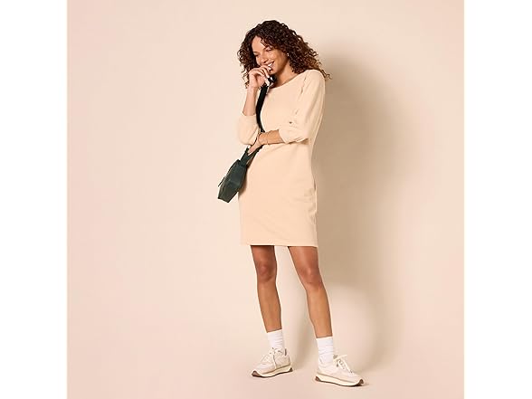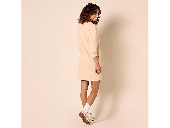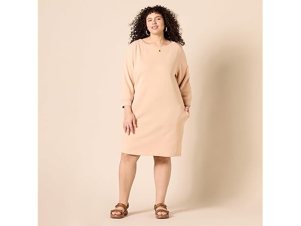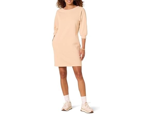 Amazon Essentials Womens Fleece Blouson Sleeve Boatneck Sweatshirt Dress Beige (S)