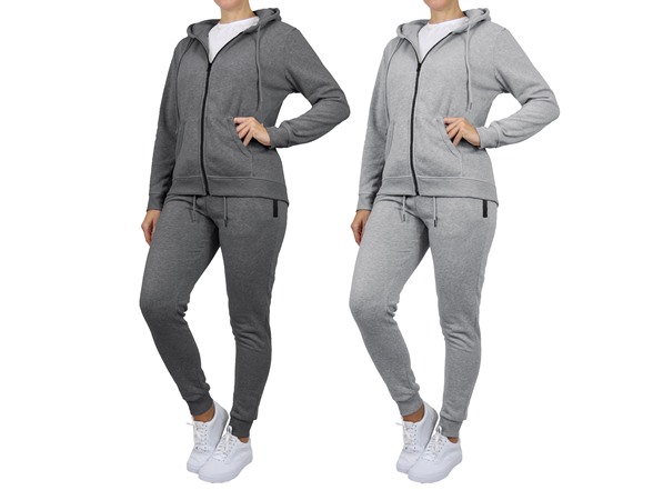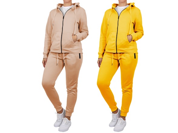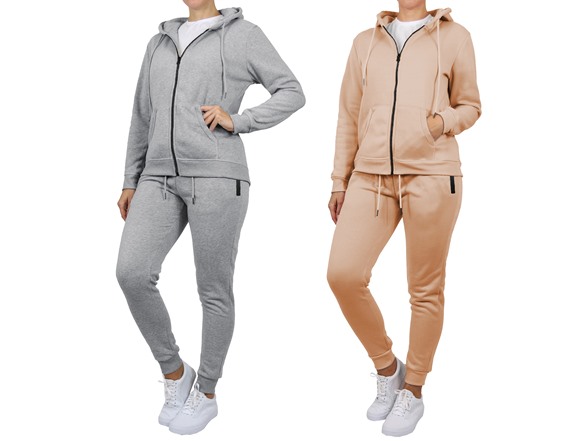 Women's Fleece-Lined Full Zip Hoodie & Jogger - 2 Sets